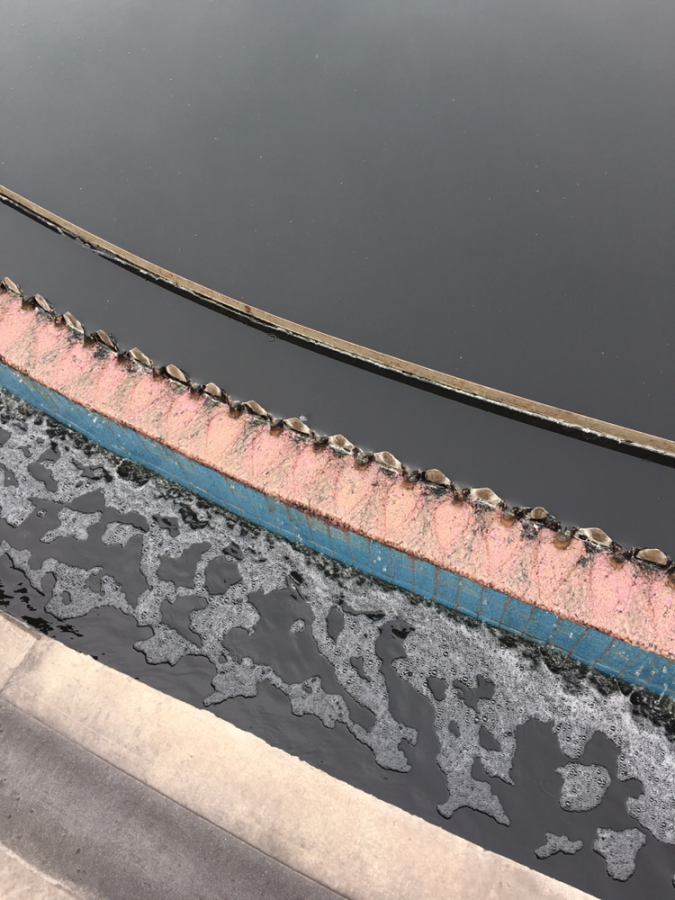 谁知道污水处理厂初沉池出水堰粉红色是什么物质造成的?