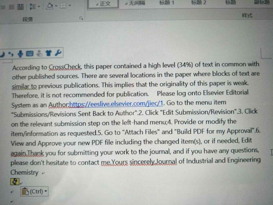大家有没有遇到过这种情况啊,第一遍投稿后收到审稿人的问题,其中文章语法需要修改,我们修改并回答了问题,结果再次提交的时候期刊那边说重复率超出他们的规定,可能创新性不够给拒了。这可能是我们修改语言部分的时候重复了,但我们的内容是创新的,想请问大家这种情况怎么办呢?是不是应该给编辑写封信说明一下,再改再投呢? 发自小木虫Android客户端 |