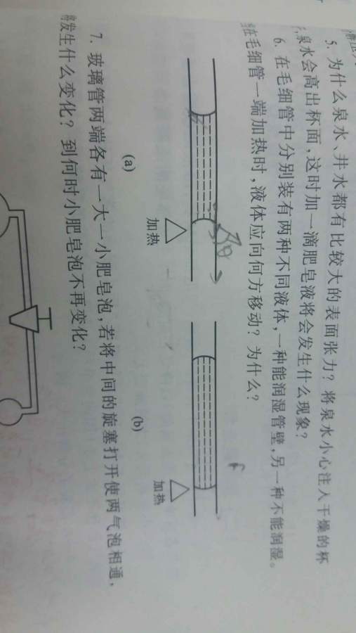 a:加热左移。因为温度升高,表面张力减小,则附加压力变小,所以右边的附加压力小于左边,导致左移。(附加压力方向知道吧,指向曲率中心) b:右移,一样分析。 发自小木虫Android客户端 |