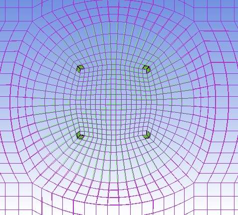 采用ICEM划分网格,对于圆形区域,O型网格划分后,四个角上的网格质量差怎么提高?