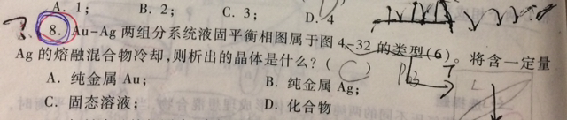 | 根据这个相图的类型 下面区域就是固溶体区域 ag 和au 能以任意比例互溶,所以形成固溶体,不明白看教材,傅献彩308页有讲解 |