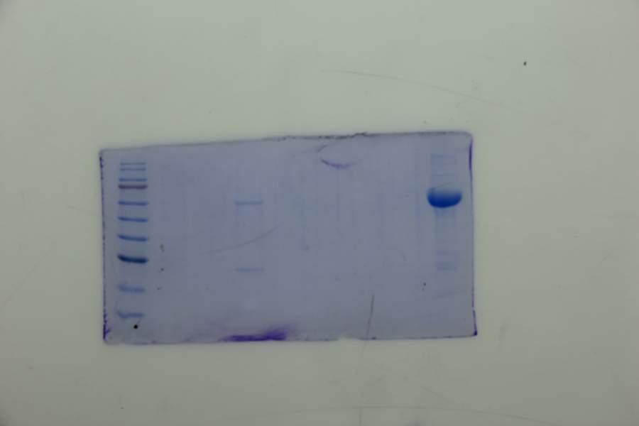 遇到原核表达蛋白大小问题,求助! 菌株:rosetta gami2 载体:pET-28a iptg: 0.5mM 温度:20度 转速:180rpm 时间:过夜 纯化后得到目标蛋白大小20KD,杂蛋白大小65KD左右。 把之前小摇的菌再次接种,20KD的蛋白几乎没有了,65KD的蛋白反而很多,而且都可以被纯化出来。 请问怎么去除杂蛋白? IMG_3726.JPG 1503388763(1).jpg@hc-material |