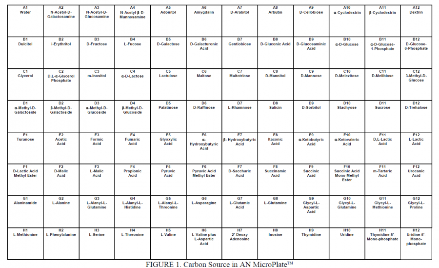 请问,BIOLOG的 AN MicroPlate 里95种碳源可以分成几大类?(例如:哪些是糖类?哪些是羧酸类?哪些是胺类?) BIOLOG的 AN MicroPlate 里95种碳源分布请见下图附件。 1.png [ Last edited by dd4342 on 2017-8-24 at 13:13 ] |