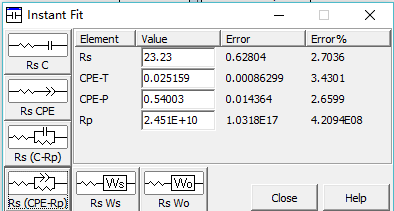 染料敏化电池 对电极(symmetrical cell)阻抗谱 zview 拟合 中等效元件