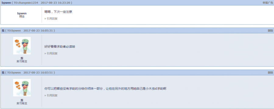 对 ID bpwen 、mumupiaoling 马甲求助行为的预处理意见