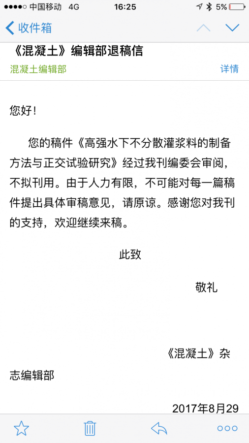 今天收到混凝土的拒搞信,心情很低落已有13人参与