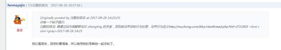 对 ID fenmoyejin 、zhengting 马甲求助行为的预处理意见