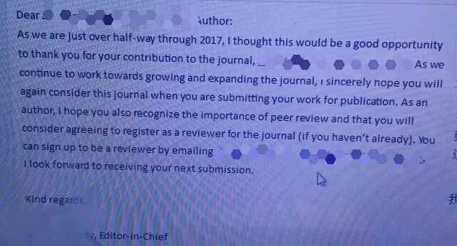 | 从邮件中没有看出拒稿的意思,只是希望你能成为审稿人,为该期刊做点贡献。 |