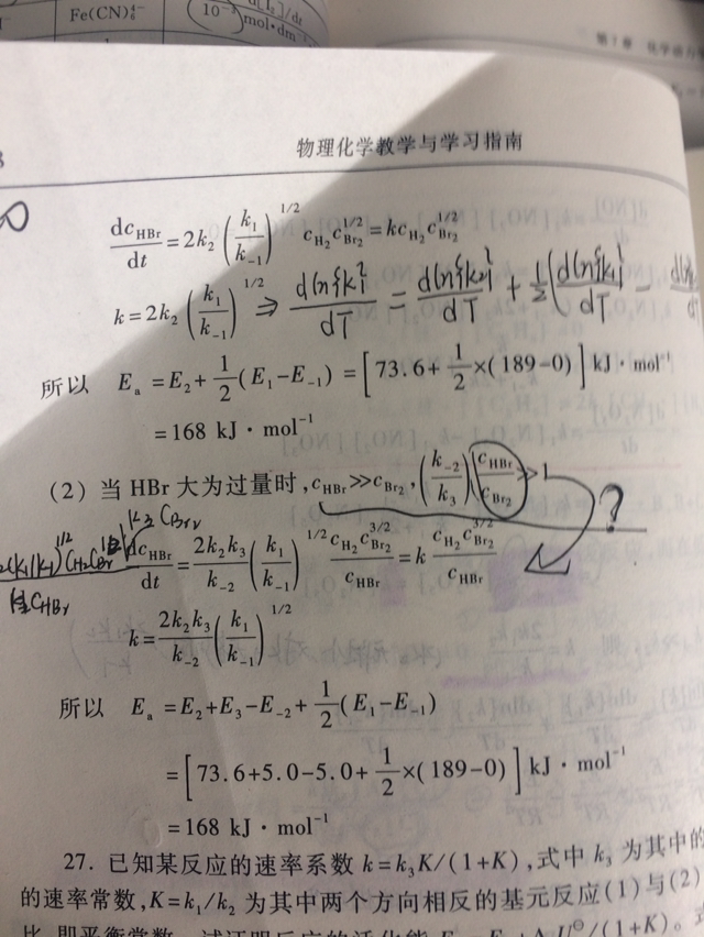 求大神讲解一下第26题第二小题,当HBr大为过量时,怎么就得到下一个式子的(就是我打问号的那个地方) 发自小木虫IOS客户端 |
