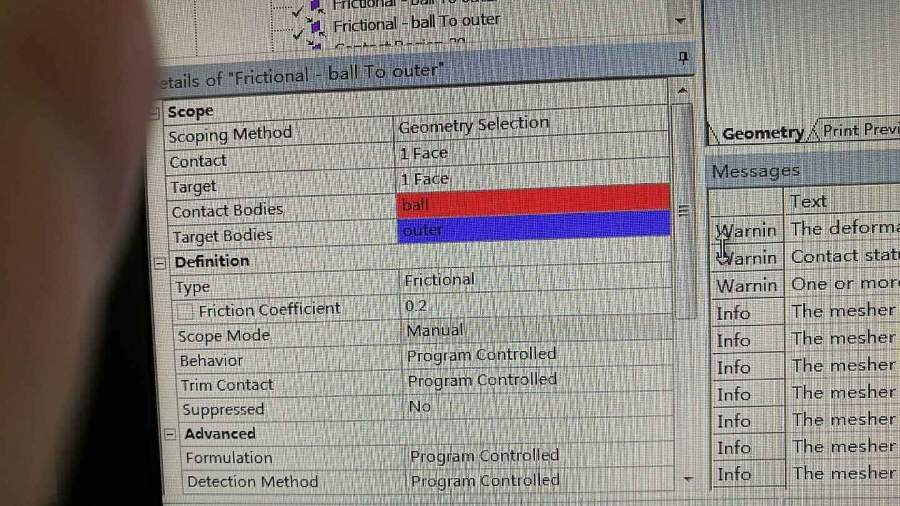 各位大神,本人刚接触workbench不久,在对轴承做结构静力学仿真的时候,出现了下面的问题,是什么原因导致的?求教各位大神了。 @wuming524 发自小木虫Android客户端 |