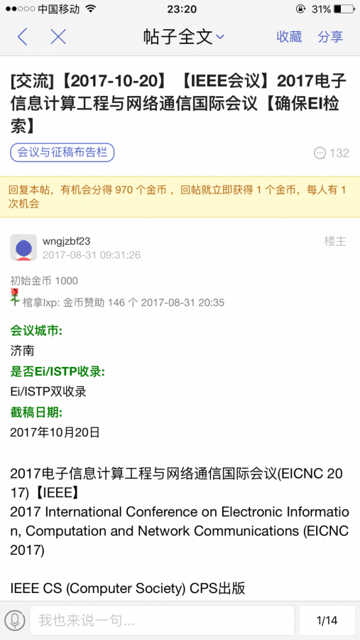 知网,中国学术会议网,ieee的中国官网里都没查到,而且还承诺一定会ei检索,不必去参会,,第一次投稿,没有任何经验,大家帮帮忙。谢谢 发自小木虫IOS客户端 |