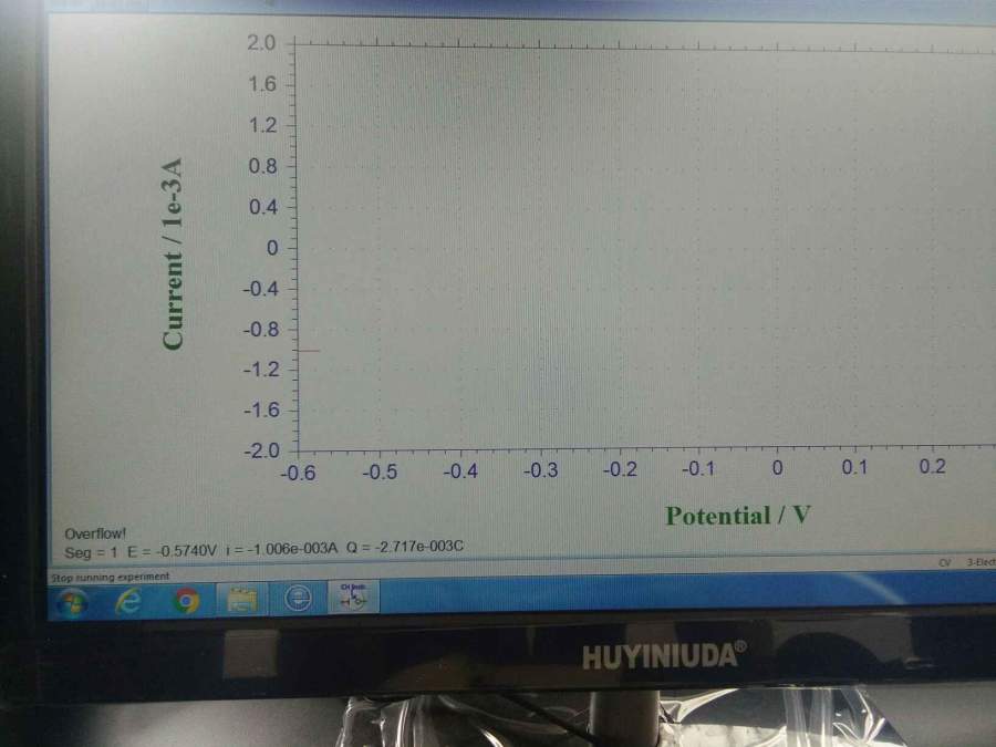 二氧化锡三电极测试,我选的电压窗口是-0.5到0.5时,是可以测的,但是电压窗口是-0.6到0.5的时候就一直显示overflow,如图所示,请问这是为什么啊 发自小木虫Android客户端 |