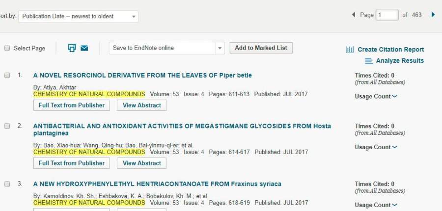 | 能查SCI检索的虫友,帮忙查一下chemistry of natural compounds请问检索到哪一期了,非常谢谢。 |