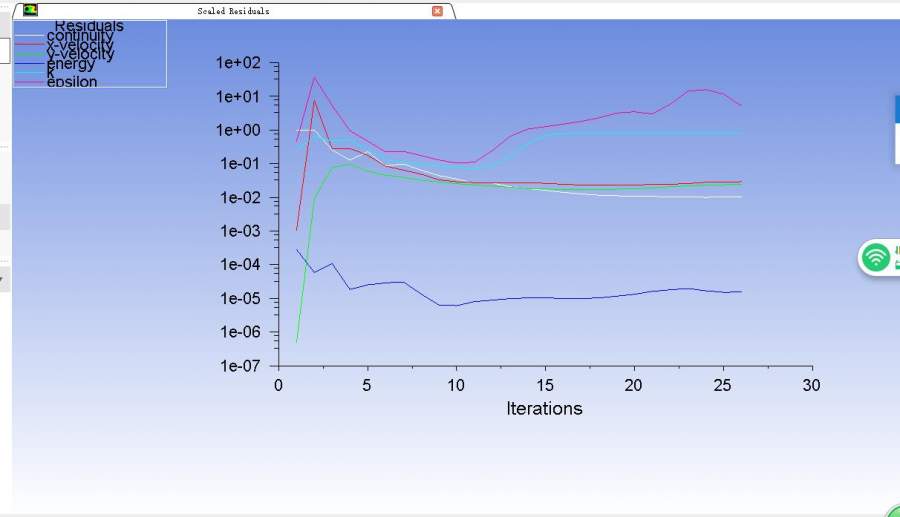 求助!本人CFD小白。最近算一个二维的左上侧送风,对侧回风,地板加热的二维流动的模拟,Re只有600多,为什么用低Re模型老是不收敛,而且fluent计算界面里K是直线,用k-e标准模型就不这样。 360截图20170904151914083.jpg |