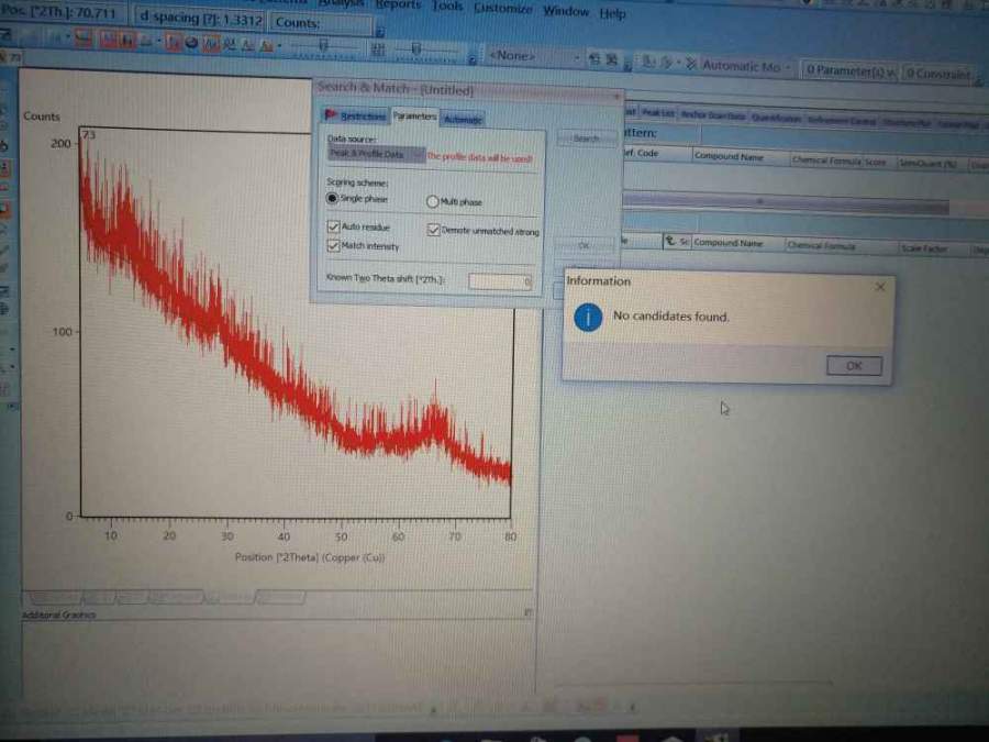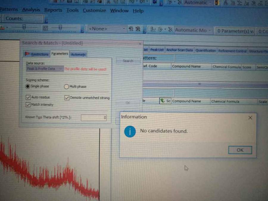 想再请问您一下,那个no candidates found是什么意思? 我本来是打算用硝酸铝在500℃下煅烧制备氧化铝的,之前实验室的师兄师姐也用这个方法制备氧化铝,为什么我的就没成呢? 发自小木虫Android客户端 |