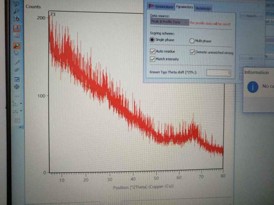 我最近测了一下用硝酸盐在500℃煅烧制备的Al2O3的xrd,但是在寻峰的时候出现了如下图的现象? no candidates found是什么意思了? 为什么会出现这种现象? 会不会和测的步速太快有关(测一个样2.5min)? 求哪位大神告知一下,谢谢! 发自小木虫Android客户端 |