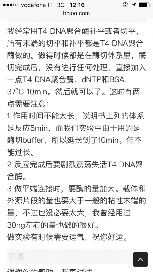 | 各位分子生物学大神,我最近在做一个自己很不擅长的实验,我购买了一个载有我的目的基因的vector,现在想剪掉我的目的基因然后组合一个empty vector (做control用的),现在已经剪切好了(剪切位点是salI和HindIII),但是因为两个端位不兼合,请问有没有建议解决办法的? 谢谢! |