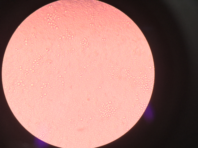 | 感觉像是念珠菌污染,一片一片的珠子一样散落在哪里,没猜错的话应该是念珠菌污染了,推荐一个这个产品http://www.zfdows.com/h-pd-279.html#_pp=0_638_48专门针对念珠菌污染的试剂,我们之前用过,效果挺好的,2-3天就能把污染控制住,一周左右细胞状态就变好了 |