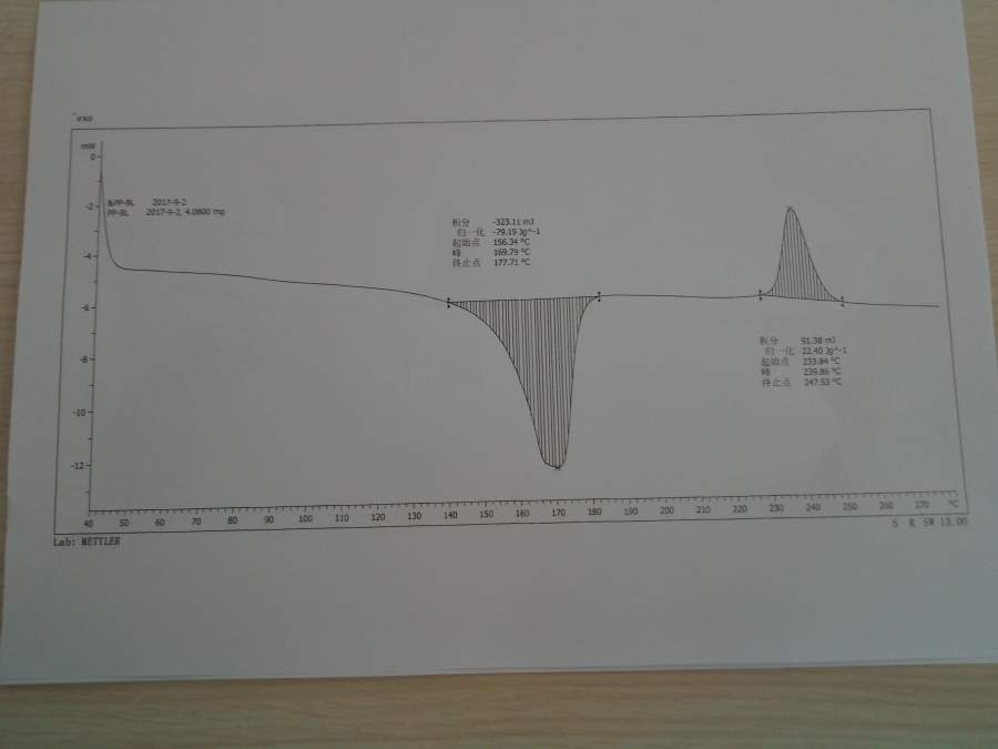 如图为聚丙烯(PP)原生切片的DSC图,第一个是熔融吸热峰,求解第二个峰值是什么意思!