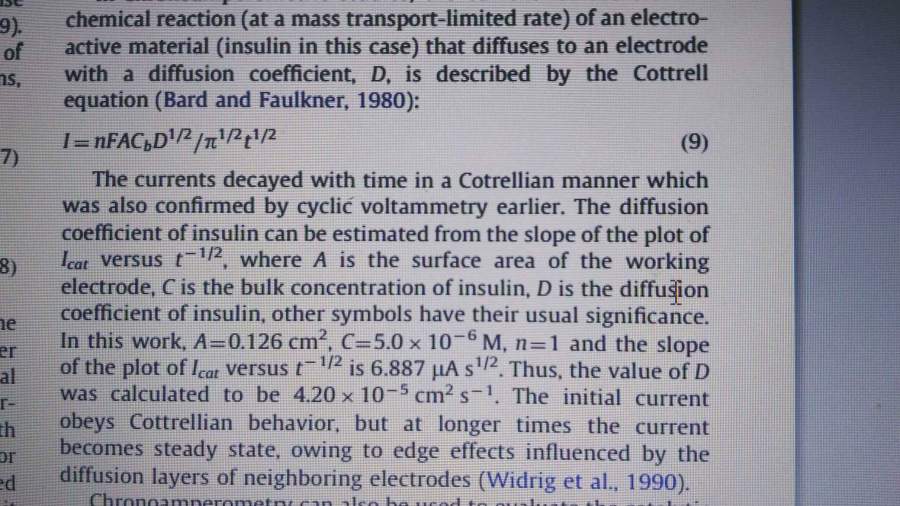 按照文献,电流与时间(t)-1/2,做线性,斜率为6.887,代入文献公式求扩散系数D,怎么算不对?快崩溃了,求救大神 发自小木虫Android客户端 |