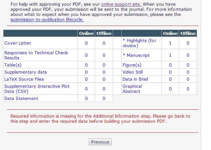 Required information is missing for the Additional Information step. Please go back to this step and enter the required data before building your submission PDF.