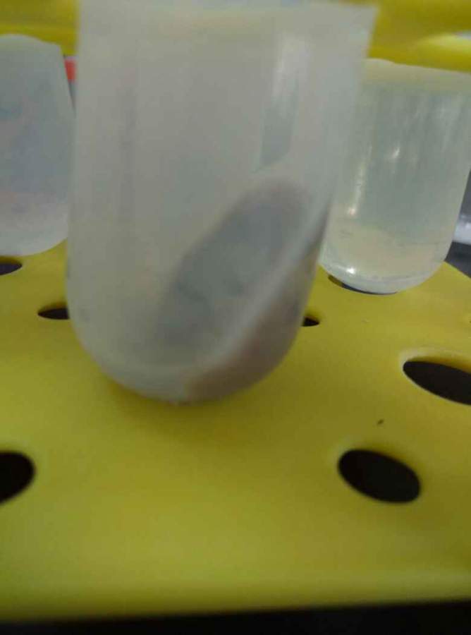 没看到微蓝的光,多次离心后是图中这样的,那个白色的应该就是纳米纤维素了吧,我应该怎么把它弄出来啊