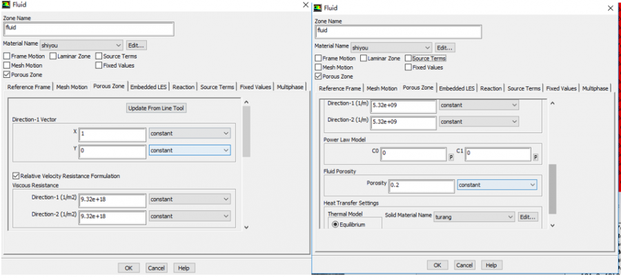 请教一下各位前辈,我做埋地热油管道泄露土壤的温度场分布,在Porous Zone 最下面一项Solid material name应该怎么设置呢?我把最上面Material name 设置成原油,最下面solid material name 设置成土壤,两个阻力都加的很大了,以很小的流量泄露,结果高温都会充满整个空间。不知道是不是我哪里出错了,还请前辈指教。先谢谢了! 1.png 2.png |
