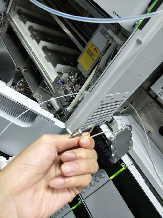 液质堵了,排查不是柱子。是柱子前端的1mm内径的通路,如图这个堵了,怎么办,反冲过,通了。但是正着就不行。压力一下就上去了。仪器是岛津的8060液质三重四级杆的。大神帮忙,谢谢 发自小木虫Android客户端 |