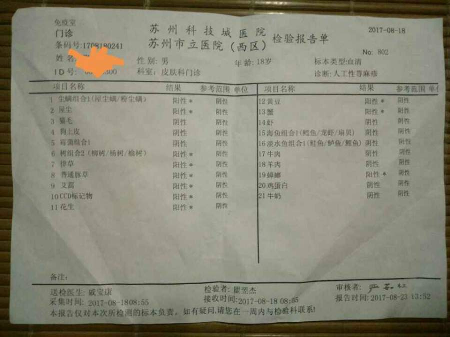 如题,附过敏源检查单