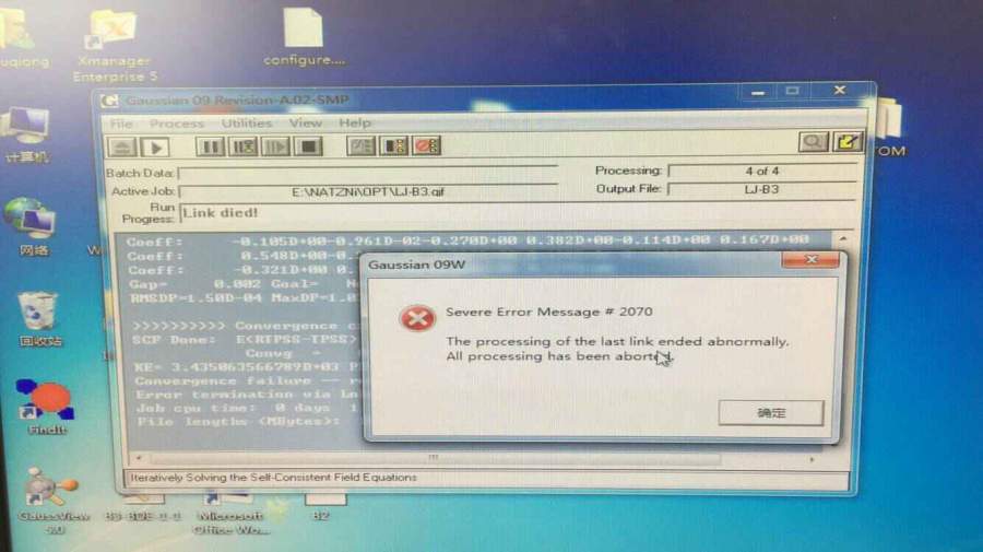 用高斯软件计算物质的几何优化,报错2070如何修改??