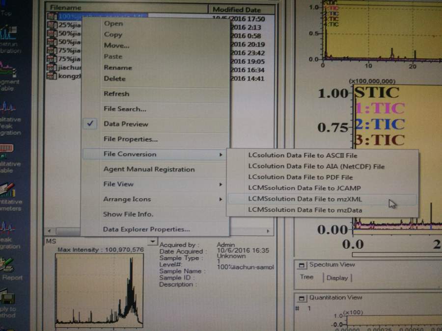 岛津液质联用仪质谱数据.lcd文件,如何转换为.mzXML格式? 已有2人参与