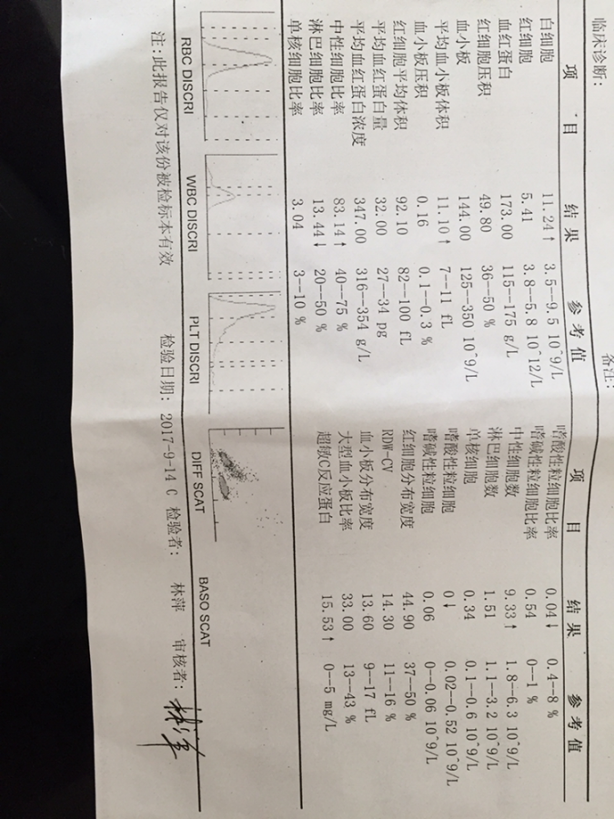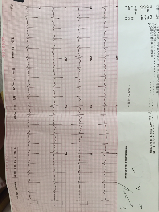 去年实验经常熬夜,生活不规律,去医院做了心电图,结果为临界性下壁导联T波段轻微异常,医生说不用在意,生活规律点,不要太累。今年研究生毕业,体重在3个月里猛攒25斤,有时候会觉得自己走路都累,爬楼会喘气。昨天早上起来浑身无力,头疼发晕,发烧38.5。高压146,心率120(静止时)。然后医生给了安乃近片退烧,输液两天消炎。这是我的心电图和血常规,请大神们帮我分析一下。感谢万分!!! 发自小木虫IOS客户端 |