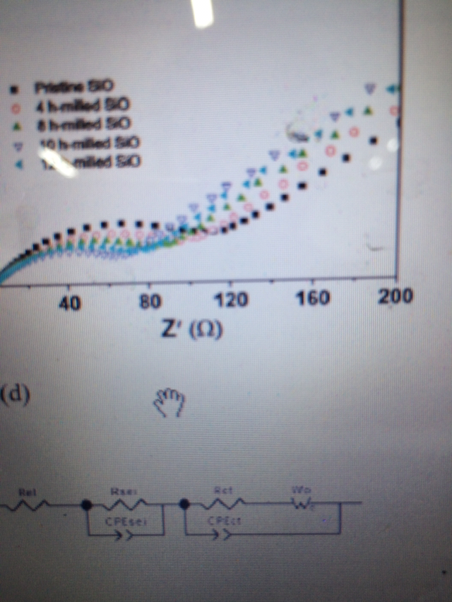 一氧化硅的放电电压截止到0.5,0.3,0.2v时,其阻抗图有2个半圆,而第二圈的放电到这三个截止电压时,却只有一个半圆,为什么啊?还有这个图2的等效电路图用Zview软件拟合不出来,用什么软件可以拟合出来呢?