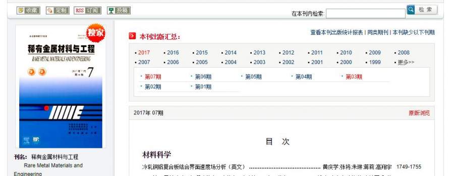 求各位帮忙检索一篇论文的SCI收录信息: 徐铁伟,李金山,张丰收,韩飞孝,刘向宏,医用Ti-15Mo合金的再结晶动力学及时效响应研究,稀有金属材料与工程,Vol. 46, suppl. 1 (2017年46期增刊1) |