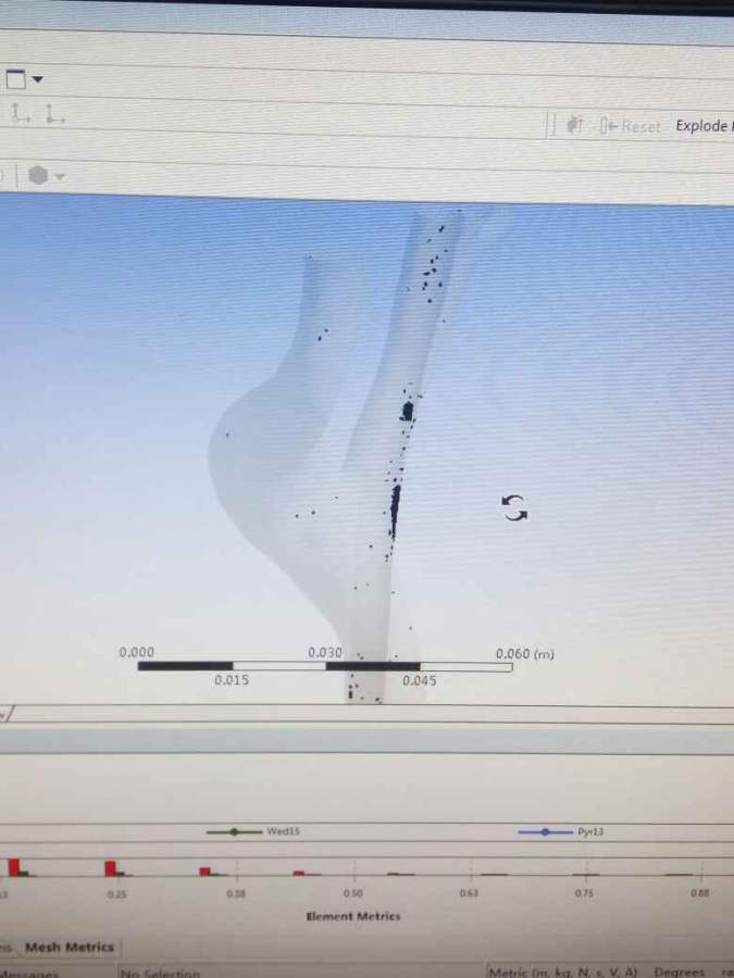 如题,网格质量一直是问题,我才刚从学姐那里学了点基本操作。 我在ansys mesh里一直用的automatic method方式划网格,现在element quality平均有0.7以上,skewness是0.206(有些单元分布在0.9以上让我有点在意),最大的问题是雅可比有负的! 我看了一下,有问题的网格单元主要分布在插管壁和血管壁贴得近的地方,近得几乎要碰在一起了,空间就非常窄,这种情况要怎么调整网格呢? 非常急切!拜托大佬们了。 发自小木虫Android客户端 |