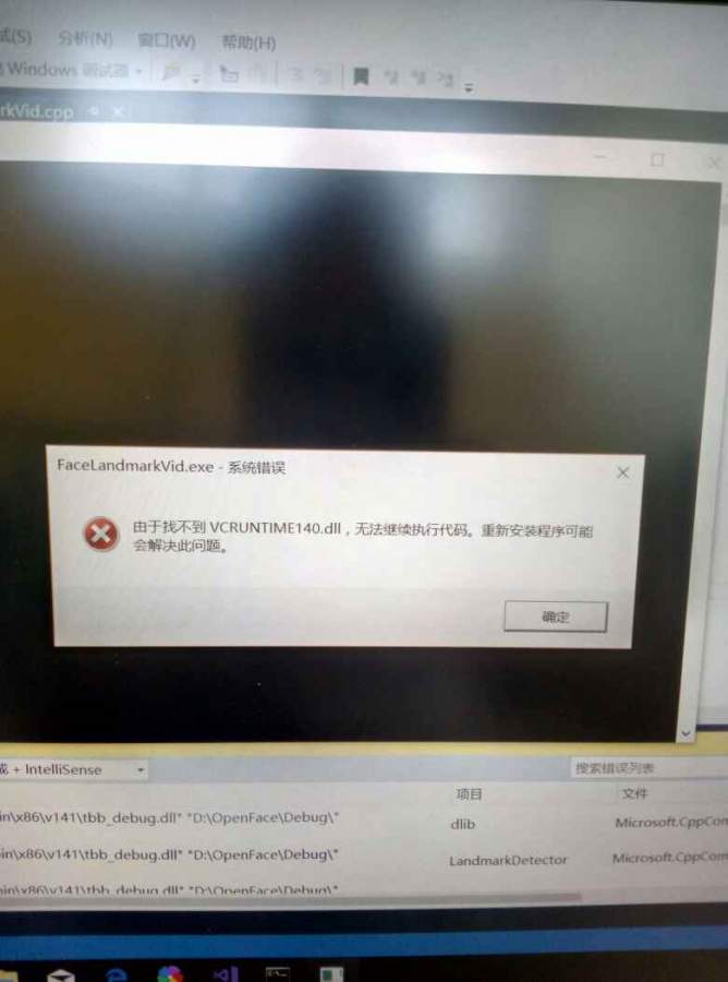 visual studio在运行时说"这些项目已过期: dlib-Debug Win32 LandmarkDetector-Debug Win32 FaceAnalyser-Debug Win32 FaceLandmarkVid-Debug Win32" 在是否生成这些项目确定或者否后都会出现"由于找不到VCRUNTIME140.dll,无法继续执行代码。重新安装程序可能会解决问题" 是因为关键安装过程出问题了吗?需要重装吗?有没有其他解决方法? 发自小木虫Android客户端 |