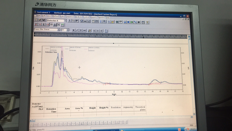 岛津色谱,流动相磷酸二氢钾:甲醇34:66,进了三针血清样本后柱压上升,13.1-13.7-14.0,后来稳定在14.0,再进混标,压力也上升了0.2,发现保留时间2点儿几的时候出现一个很高的峰,且开始出现肩峰,加了保护柱的,考虑是不是样本污染了柱子,后来用大比例水冲,换大比例甲醇小流速过夜,第二天进混标依然没有改善,现在我该怎么办?第一张是六个标准品混合,之前标准品最早出峰的时间是3点儿几,第二张是三针样本,我现在该怎么冲柱子呀? @鸭绿江畔 @superyeast @wyy080214 @学术巨星 @klicking 发自小木虫IOS客户端 |