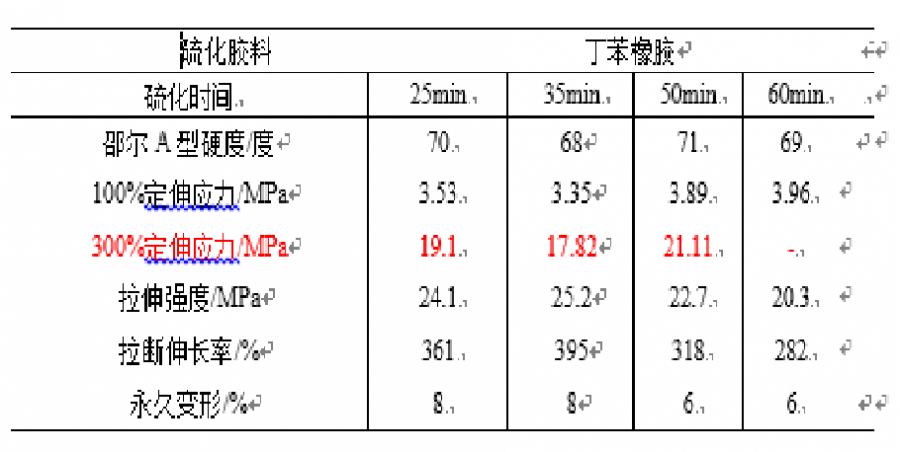 各位大侠们:某乳聚丁苯在不同硫化时间的物理机械性能,主要针对300%定伸,随着硫化时间的延长,25min,50min时比较高。为什么会出现35min时,下降的现象???如何去解释这种现象?望大家能提供一些好的意见,非常感谢! 无标题.png |