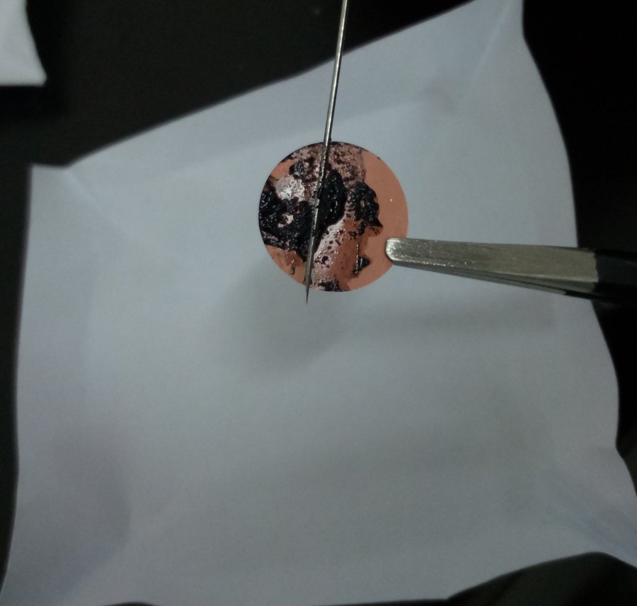物料:super P:PVDF (7:2:1),混合研磨30min,滴加NMP 2-3滴,再研磨15-20min后,涂到集流体上。此方法,以前做可以,现在做不行。现在每次都是这样,开始以为是PVDF吸水了,110-120度整夜真空干燥,和重新购买都是这种情况。。。