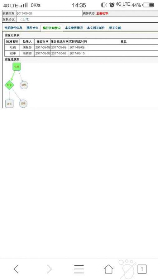 动力工程初审,都十多天过去了,怎么别人的文章初审就几天,这是个什么情况,第一次打电话说主编出差,第二次打电话说主编审完还没提交过来,这是什么意思?初审时间那写着15号完成初审,状态那还属于初审状态,流程图一点也没更新……是不是要拒? 发自小木虫Android客户端 |