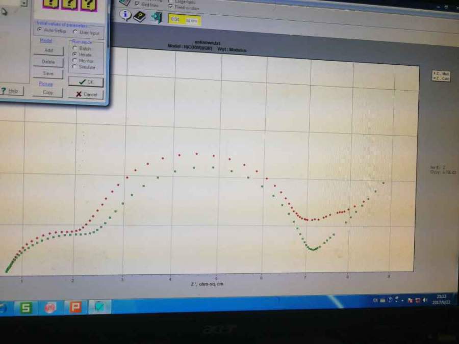 这是我拟合的阻抗图谱,但是始终两条线不能重合,求助啊。。拟合电路是R(C(RW))(QR)...哪位大神帮帮忙 发自小木虫Android客户端 |