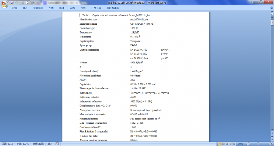 你看看你的晶体数据文件夹里有没有“.rtf”或“.txt”的文件,该文件中的Table 1中即是这些数据。