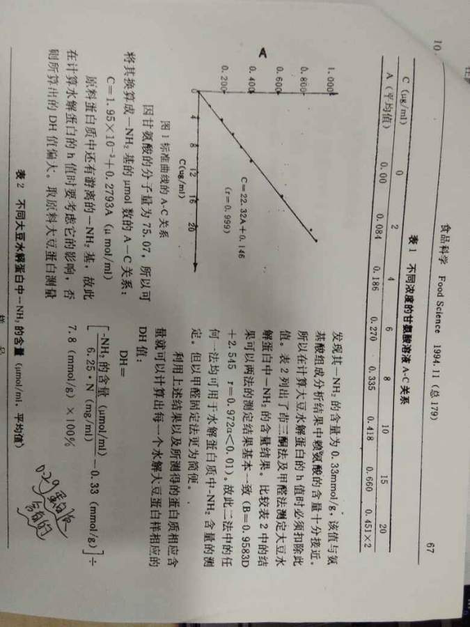 您好,麻烦您看一下文献中的这个公式,现在我能做的,比如说我从鱼肉中提取的肌原纤维蛋白,然后用酶去酶解,我只能得到酶解液中氨基的含量,根据标曲,最终换算成氨基的含量是umol/ml,6.25*N?,我不理解,N和htot有关系吗?至于分母htot我是用凯氏定氮做的含氮量。这些天一直都在弄这个问题,麻烦指点一下,谢谢!谢谢! 发自小木虫Android客户端 |