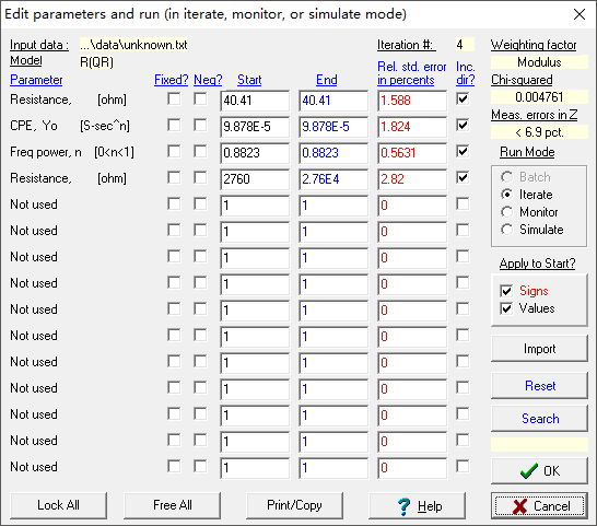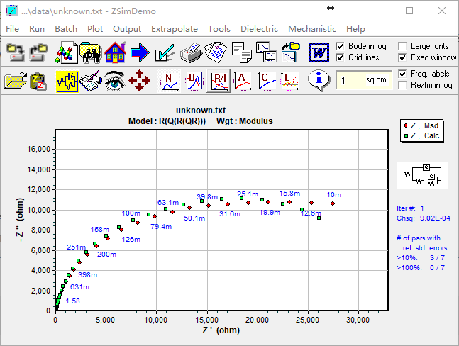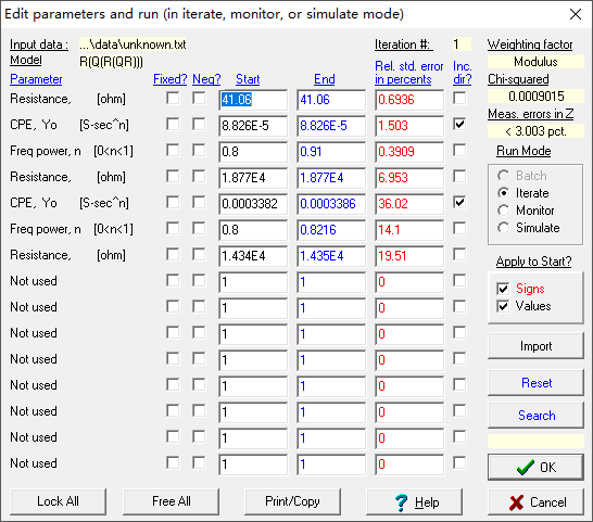 电化学初学者。 图为镍基合金在0.5M氢氟酸中的交流阻抗谱,刚开始使用Zview拟合,在高频阶段不能完美拟合,低频阶段变成了和Z’轴平行的直线。不知该如何拟合。 请求各位指点一下数据应该怎么解释,这应该属于哪种模型?用什么样的等价电路去拟合? |