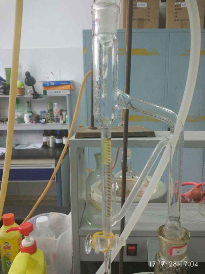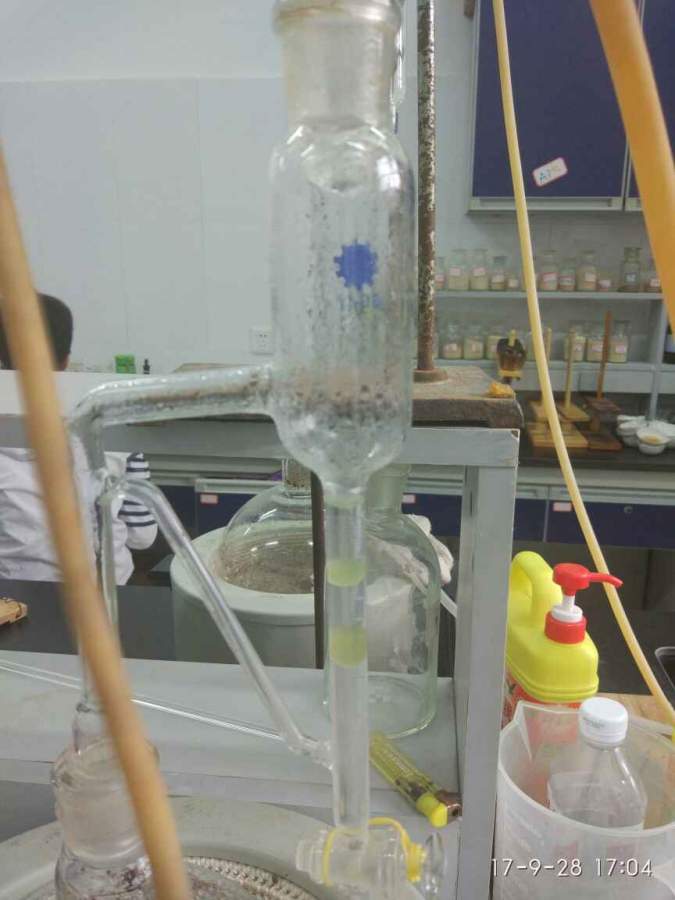 因为这个要测大概6个小时,过1小时左右它就往下面跑,有一次忘了过来弄,好像跑到圆底烧瓶里面去了,这个会不会有影响。因为挥发油的量我是用总油量减去二甲苯的量,如果它跑到圆底烧瓶里面去了,那么二甲苯的量减少了,是否会导致总油量减少,从而使结果偏小。新手,问这么多,还望解惑。 发自小木虫Android客户端 |