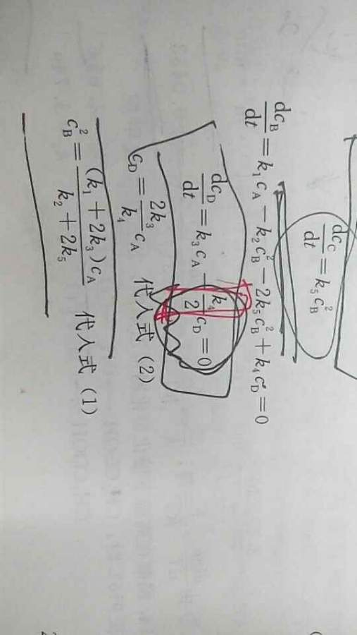 依据第一张图写出化学动力学方程,第二张图是答案,就是想知道答案里2和1/2是怎么来的,谢谢各位大神。 发自小木虫Android客户端 |
