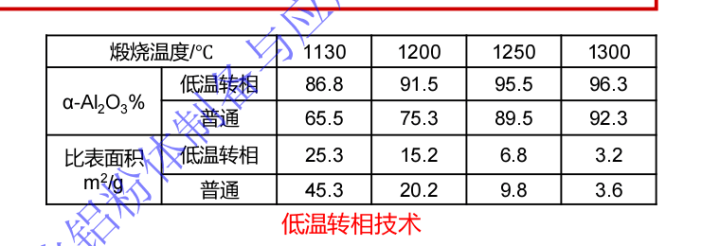 氧化铝煅烧温度与晶型转化率、比表面积的关系