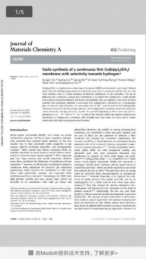 MOF膜文献交流