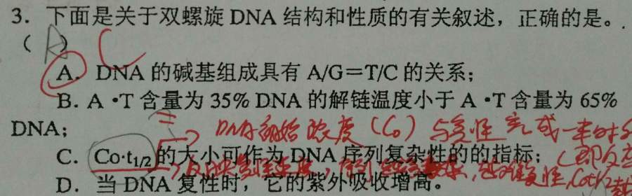 1、胰蛋白酶水解由赖氨酸、精氨酸的羧基形成的肽键,只有两个肽碎片. 2、DNA分子中的碱基组成的数量关系为:A=T,C=G。DNA分为双链DNA分子和单链DNA。在双链之中A+C恒等于G+T,但是在单链中就不一定相等了。 |