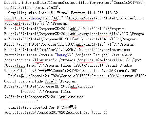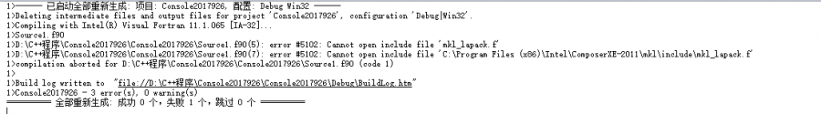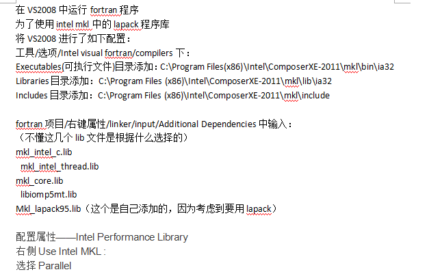 在vs2008中运行的ortran程序如何成功调用intel mkl 的lapack